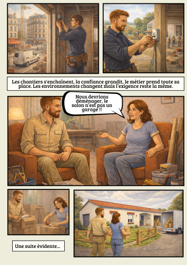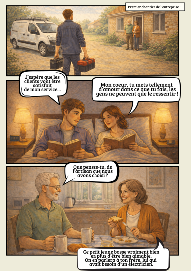 Au-delà de faire mon travail d'électricien, j'aime à penser que, si modeste soit-elles, mes interventions peuvent vous apporter un peu de soutien, peut-être une pierre à l'édifice d'un grand projet que vous avez !